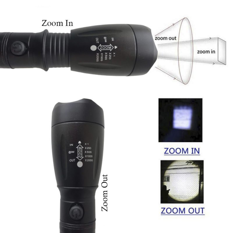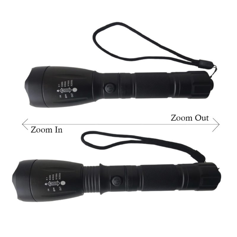 Linterna de última tecnología, con zoom que proporciona un rayo de luz más intenso y largo.